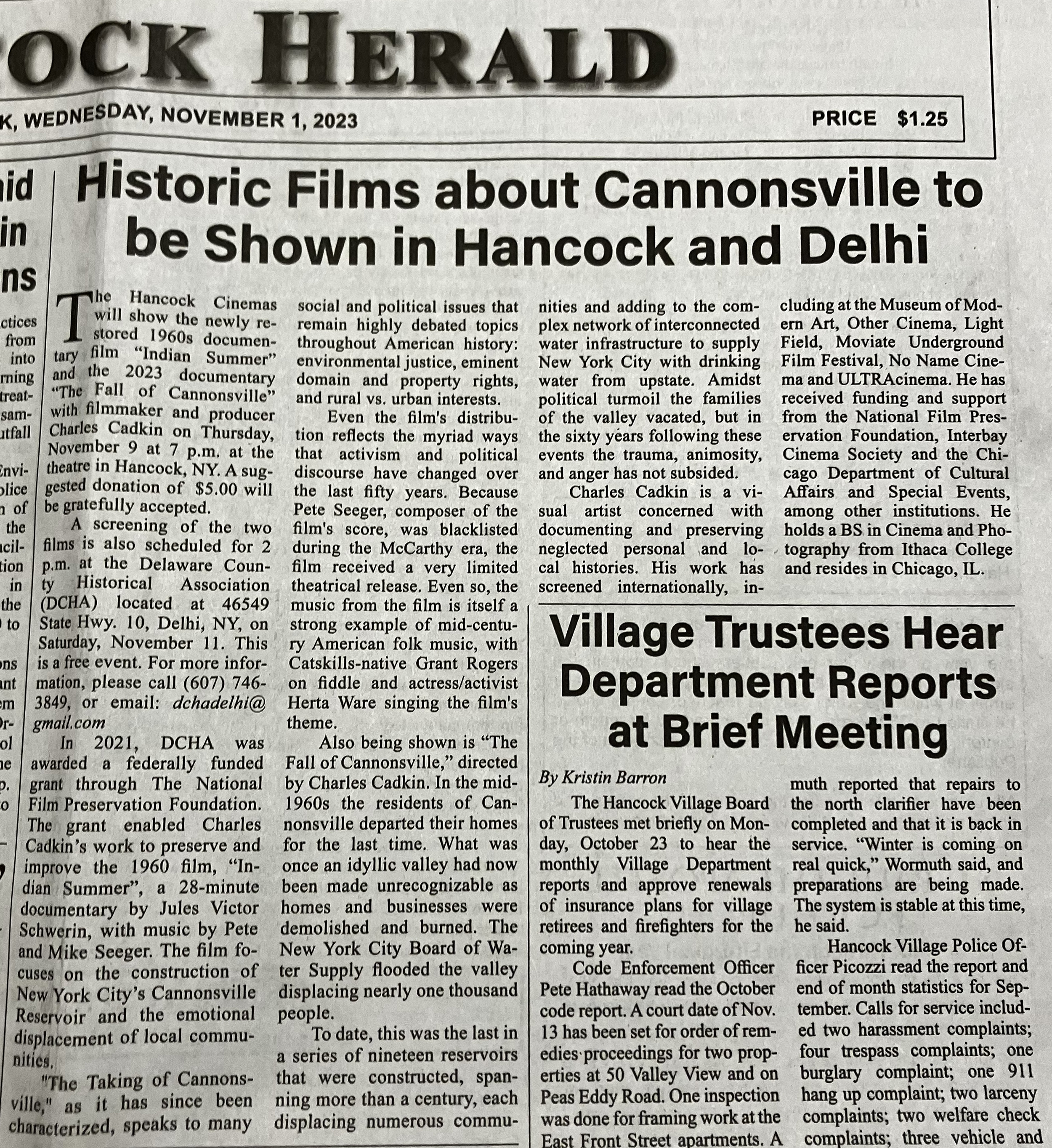 The Fall of Cannonsville (2023, 21:25, 16mm color, 35mm archival B&W)